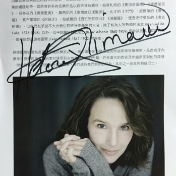 My turn. I don’t know if she was wearing colored contacts or if her aura is just that angelic after having hammered out a few hours of beautiful music, but she was gorgeous, and I may or may not have gasped. As she signed my program, I asked her: “Why Brahms on the program?”