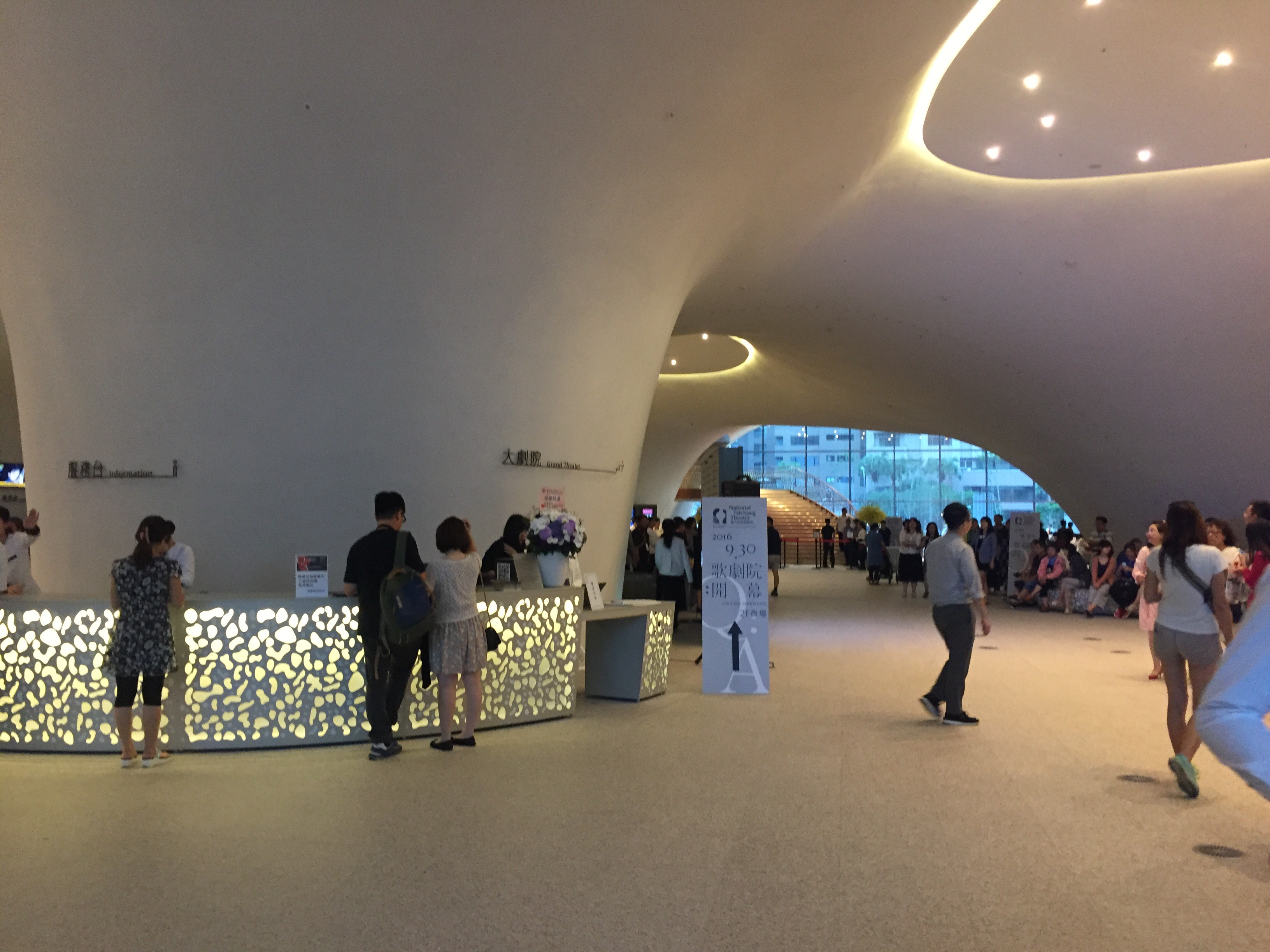 The design of the building is rather striking, not particularly the architectural style I would have chosen but spectacular nonetheless. After having seen mockups and images and icons and marketing stuff that all center around the building’s unique facade, it was especially impressive to be there and see it in person. It was designed by Toyo Ito, and is a phenomenal space for all sorts of events and artistic endeavors beyond just opera.