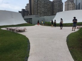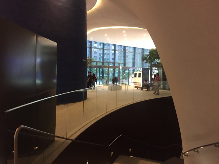 I’ll be interested to see what the public spaces look like after the opening ceremonies are done, but Friday they were filled with booths and artisans displaying their wares, like an arts festival or craft market, but instead of unruly children and throngs of loud people, it was perused in more the manner you might visit a museum. I’m not sure if those are permanent fixtures or special occasion, but the space very much lends itself to that kind of openness and wandering. There are small pools of water and relaxing elements that make it natural.