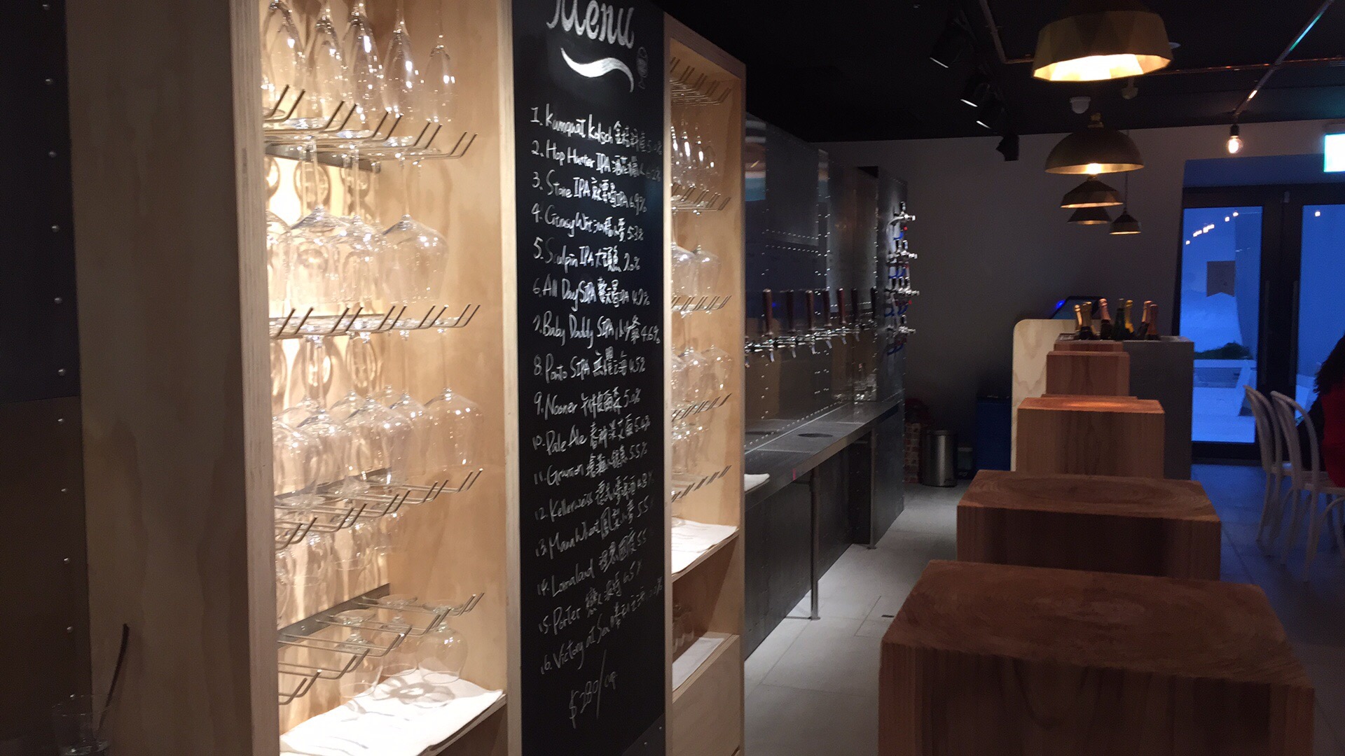 The middle floors were (at least temporarily) off limits for a reception for media and music folk, but the fifth and sixth floors reflect the artistic, welcoming open space of the first, with small shops, installations, and a few restaurants. The fifth floor boasts a fancy-looking prix fixe restaurant serving lunch and dinner, while the sixth has a small but inviting ‘beer play’ bar with a wonderful selection of craft beer, as well as wines and cocktails. This is the focus, as almost all dishes on the menu (aside from a selection of nice Asian-style tapas) are all canned presentations, served with rice and edamame, and almost all seafood: tuna pâté in olive oil, sardines, mackerel, octopus, squid, etc., more like something small to accompany your drinking than an actual meal, but I’m not opposed to it.